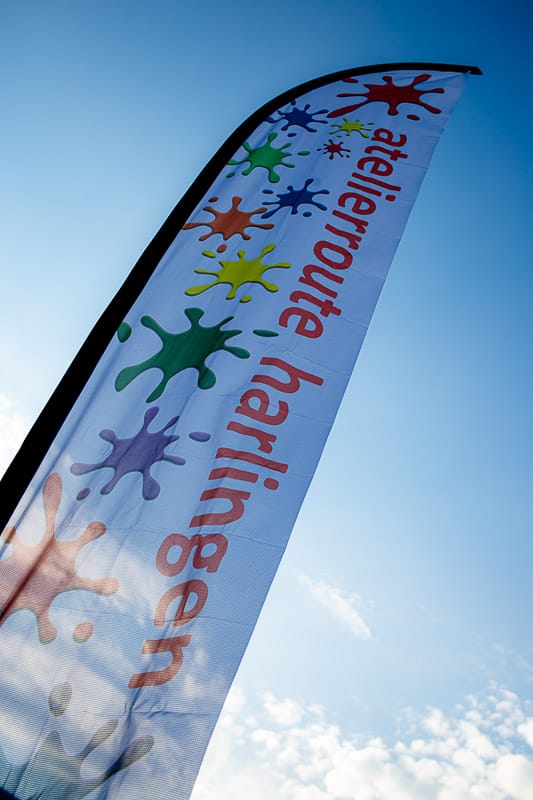 Op straat herken je de verschillende lokaties aan de Atelierroute vlag, soms zie je de oude bekende vlag wapperen en soms de nieuwe versie van de vlag.
